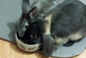 „Hoppel“ Löwenkopf, männlich, grau meliert; und „Hasi“ Widder, weiblich, dunkelgrau/beige, blaue Augen. Sie sind stets tierärztlich kontrolliert worden inkl. Impfung im August 2024. Beide dürfen immer